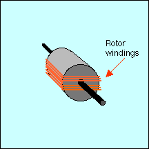 The rotor is wound with a coil of insulated wire which rotates with it. (The way a connection is made to this rotating coil wiil be explained later) |