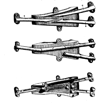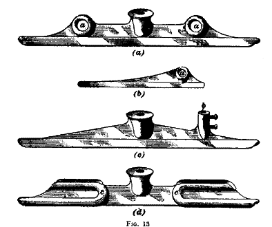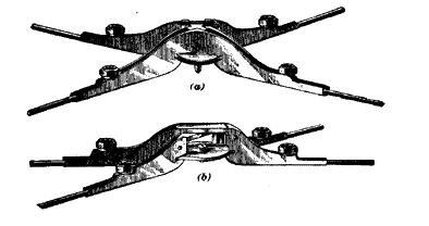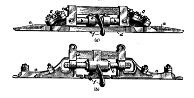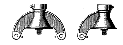 Special ears were made with anchorages for attaching straining wires (a) or to take the strain in one direction in the event of frequent breakage of the contact wire (b).