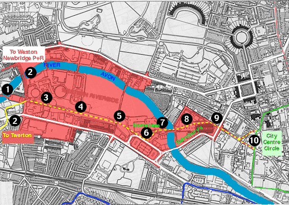 | 5 | Victoria Bridge Road crossing | As above, except: Tramstop needs to be near southern site boundary to serve hotel in Brougham Hayes |
