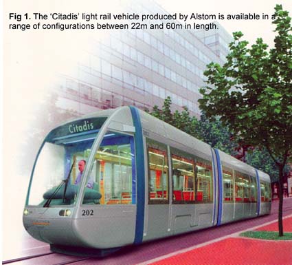 The 'Citadis' light rail vehicle produced by Alstom is available in a range of configurations between 22m and 60m in length.