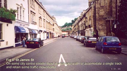 St James Street - on some City Centre streets there is adequate width to accommodate a single track and retain some traffic movements.