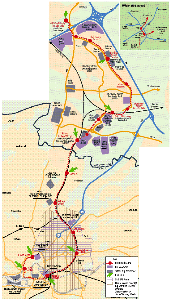 90. The project has been specifically acknowledged in the Governments 10-year plan for transport as one of new Light rail schemes currently under consideration by Government. The government stated "Transport 2010 inc udes billions of pounds of public private investment for light rail schemes. This could allow the Bristol and South Gloucestershire Rapid Transit scheme to proceed, subject to the normal requirements for value for money appraisal and planning powers and satisfactory funding arrangements being agreed with the authorities."