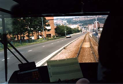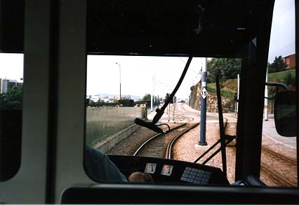Note: The tram is on an elevated track at this point