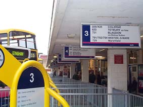 Walk towards the end of the bus station with the highest-numbered bus bays. Turn left ...and then right into Dorchester Street. |