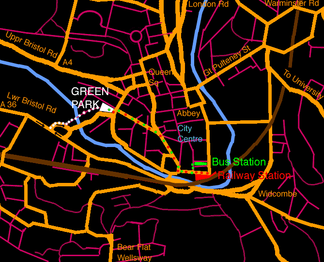 As you leave Bath Spa Station turn left along Dorchester Street |