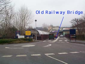 fork slightly right at the mini-roundabout which takes you across the old railway bridge |