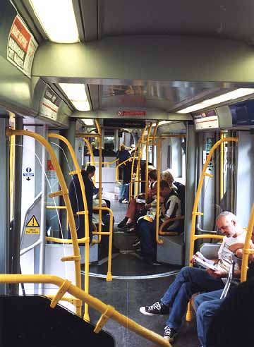 The interior of a tram is spacious, allowing plenty of room for luggage, push chairs and wheel chairs.