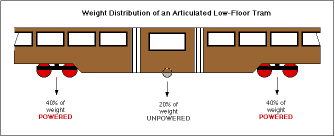 The arrangement of wheels and axles under a tram has a great effect on the quality of ride, the ability to go around curves and the extra road space needed to allow for bodywork overhang on curves.