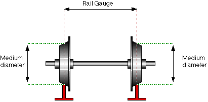 The wheels of a railway vehicle are fixed to a single axle and rotate together. If one were bigger than the other, the bigger wheel would go further at each revolution and would tend to overtake the smaller wheel. This would have the effect of making the vehicle run in a circle, to the right or to the left., depending which wheel was larger.